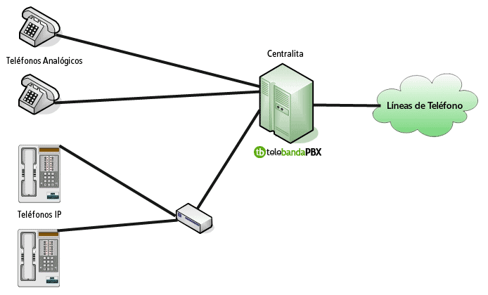 · Flexibilidad. TelebandaPBX ha incorporado la mayoría de estándares de telefonía del mercado, tanto los tradicionales (TDM) con el soporte de puertos de interfaz analógicos (FXS y FXO) y RDSI (básicos y primarios), como los de telefonía IP (SIP, H.323, MGCP, SCCP/Skinny). Eso le permite conectarse a las redes públicas de telefonía tradicional e integrarse fácilmente con centralitas tradicionales (no IP) y otras centralitas IP.